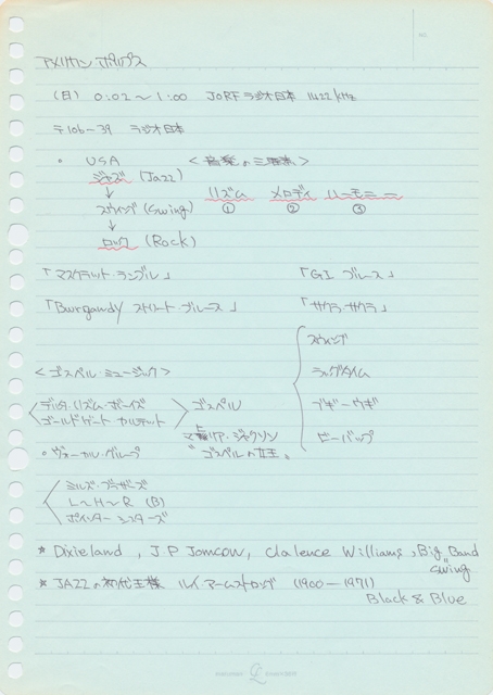 自ら筆記した2年分の[千代田ノート]が今でもバインダーに残っている。調べてみると、聴講の色合いが強かった「アメリカン・ポップス」の講義の筆記は、たった1枚しかなかった。