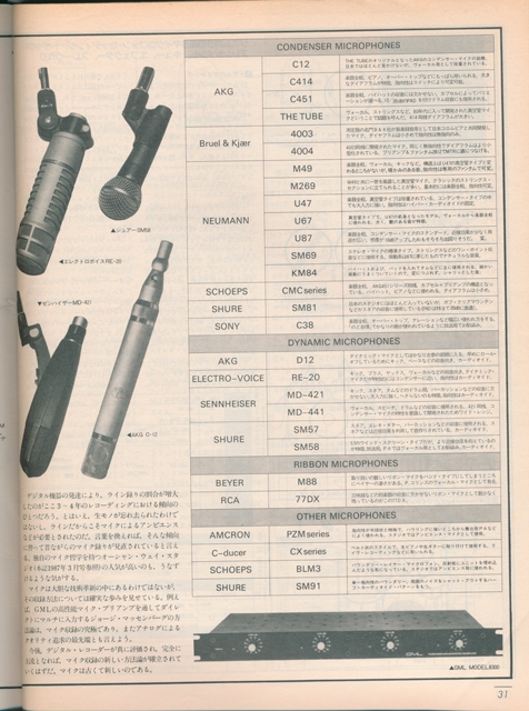 私は早速、このマイクのカタログを国内代理店より取り寄せた。手も足も出ないヴィンテージ、いずれも高額なマイクロフォンの種々。私はこの雑誌を通じて、マイクロフォンには何か他の楽器類にはないオーラがあり、特殊な知識と感受性が必要だ、と思った。
