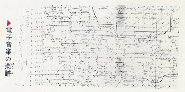 こうした音楽的原始体験において、一つだけ例外であったのは、本の中の写真から夢想される音感――視覚から聴覚への脳内変換――《電子音楽》というまったく未知なる音についてである。この実際的な《電子音楽》の音は後年、少しずつ緩やかに、様々なメディアから自分の耳に入り込んでゆくのだが、幼児が玩具のようにして手に取った原初の本『原色学習図解百科』(1968年学研)の第9巻[楽しい音楽と鑑賞]の中の一つの写真「電子音楽の演奏装置」が、それである。